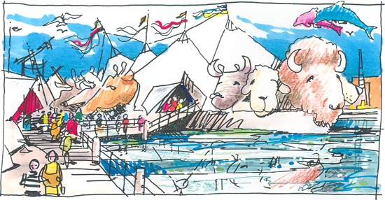 Walk through TENTOPIA. Enjoy HOT SPOTS, TRASH TRAVEL, EARTH NAVIGATOR,